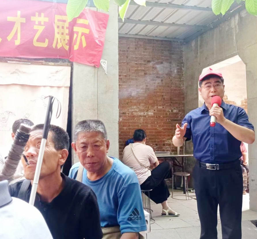 本次活动为视障人士放映讲解了电影《长津湖》,参加活动的视障朋友五十余人,电影放映前,我市著名演员赵凤芹豫剧选段《打金枝》将助残活动拉开帷幕,王金花演唱的《审子辩奸》,史爱清演唱的戏曲名段《朝阳沟》让活动现场的视障人士感受到地方戏曲的魅力;演员王世芳演唱的歌曲《怒放的生命》让现场视障人感受到坚韧不拔、不屈不挠的精神……随着节目的进行,演出的气氛达到了一次次高潮。团队带来的名中医弓占国为50余名残疾人士义诊。