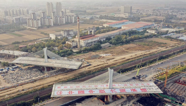 经过17个月紧张施工,日前,邢台市首座上跨京广铁路城市立交桥——莲池大街立交桥成功试转体。进行试转体的分别为京广铁路西侧10#主桥和东侧11#主桥。待10月16日正式转体完成后,两座主桥将合二为一,实现一桥飞架铁路东西。 ‹点击详情› -