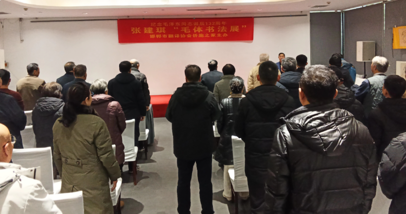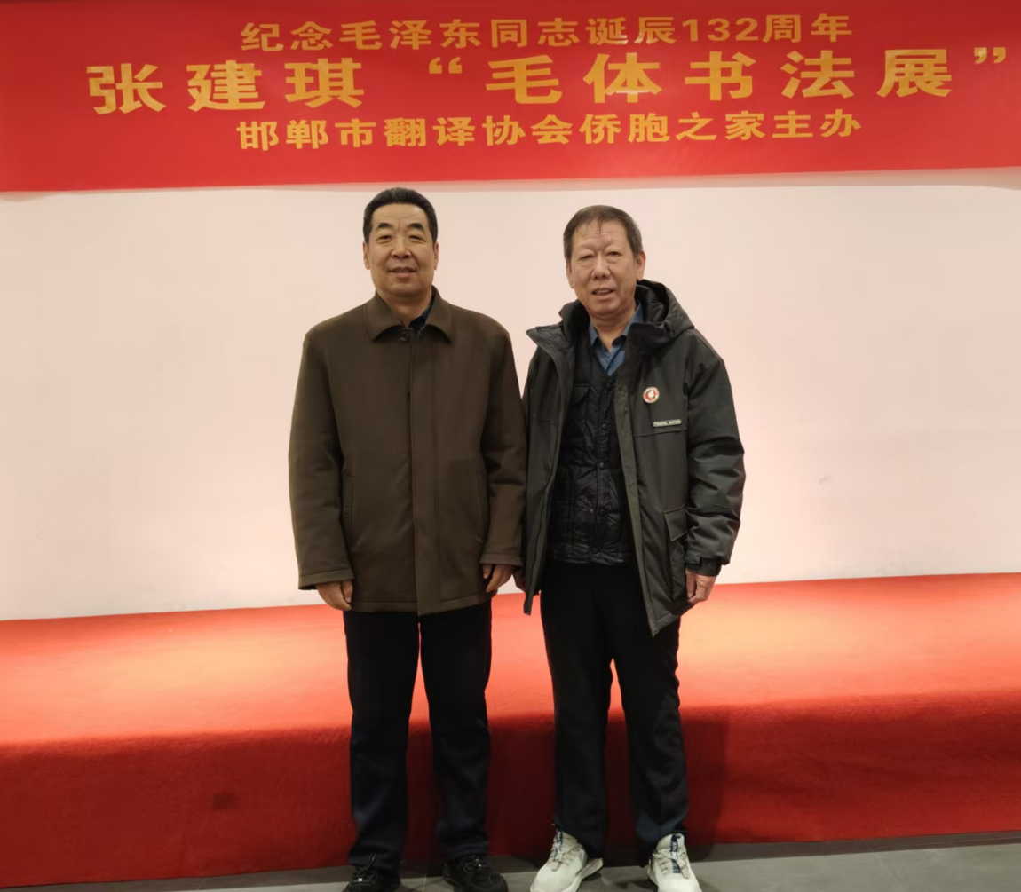 中原网讯:(采编 胡倩雪) 2025年12月23日上午10时“纪念毛泽东同志诞辰132周年—张建琪毛体书法展”,在邯郸市金山宾馆北楼会议室隆重开幕。本次活动由邯郸市翻译协会侨胞之家主办,主题是以书法艺术为纽带,缅怀伟人功绩,传承红色文化,吸引了各界人士强烈关注。