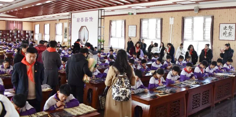 活动开始前,在北新教育集团董事长苑雷捷的陪同下,与会者参观了北新学校嬴字汉阙书画画廊、学生公寓、智能图书馆、书画展厅、录音棚、融媒体中心及世界上最大的数字书法教室和艺术实训室等,各位领导、嘉宾对学校深厚的文化底蕴与和谐的校园艺术氛围赞叹不绝,并表示“没有想到在邢台还有这样一所宝藏学校!”当参观到世界上最大的数字书法教室时,大家对校园的浓厚的书画氛围,学生们认真埋头书写的场面所惊叹,各位书画专家不由的拿起了笔纷纷题字赠予北新,祝愿北新越办越好,祝愿北新学子学有所成。值得一提的是已经八十岁高龄的国家级书法泰斗姚小尧先生,也被北新的办学理念和浓郁的艺术氛围所感动,欣然为学校写下“德艺双华”四个字,张绰庵、范国盈、王芾笠、张宝涛等第七届“希望颂”河北赛区专家顾问、评委为北新书写春联,送上新春祝福。
