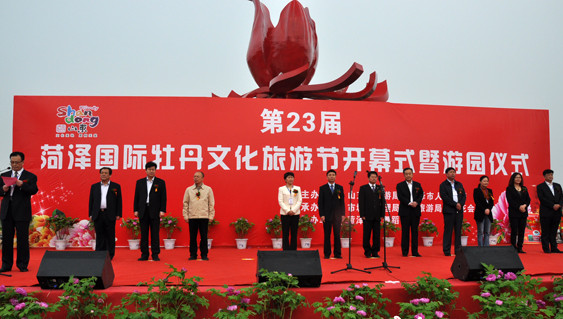 今天上午9时,第23届菏泽国际牡丹文化旅游节开幕式暨游园仪式开幕。山东省旅游局副巡视员周晓明宣布牡丹节开幕,菏泽市委常委、副市长张毓华致欢迎辞。开幕式节俭务实,除文艺演出外,仪式仅持续6分30秒。‹点击详情› -